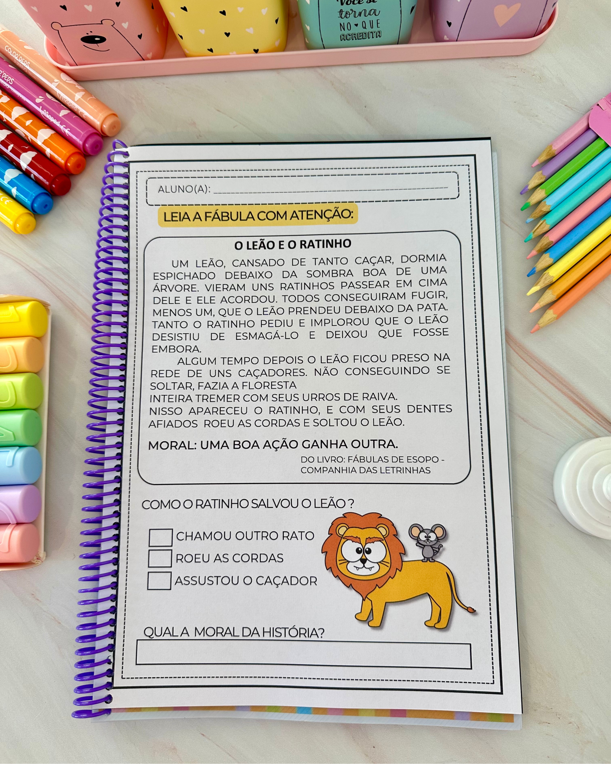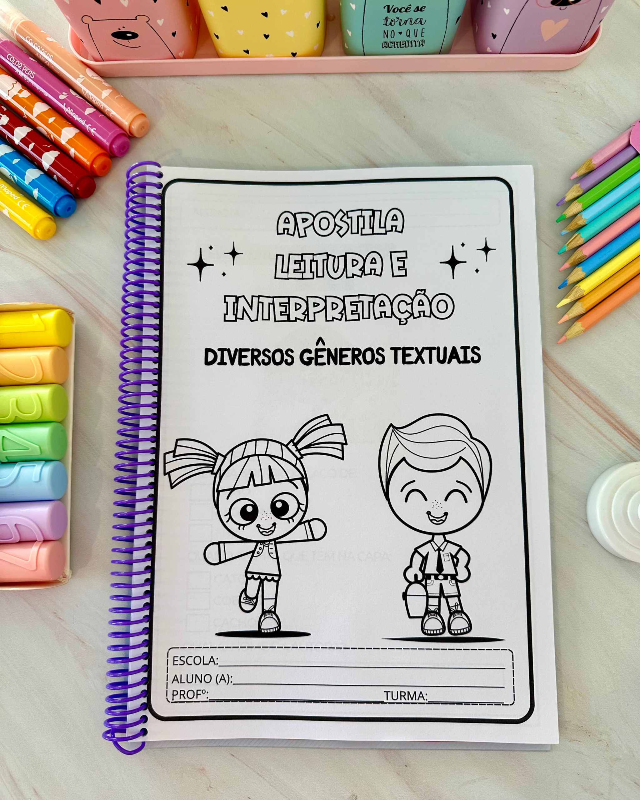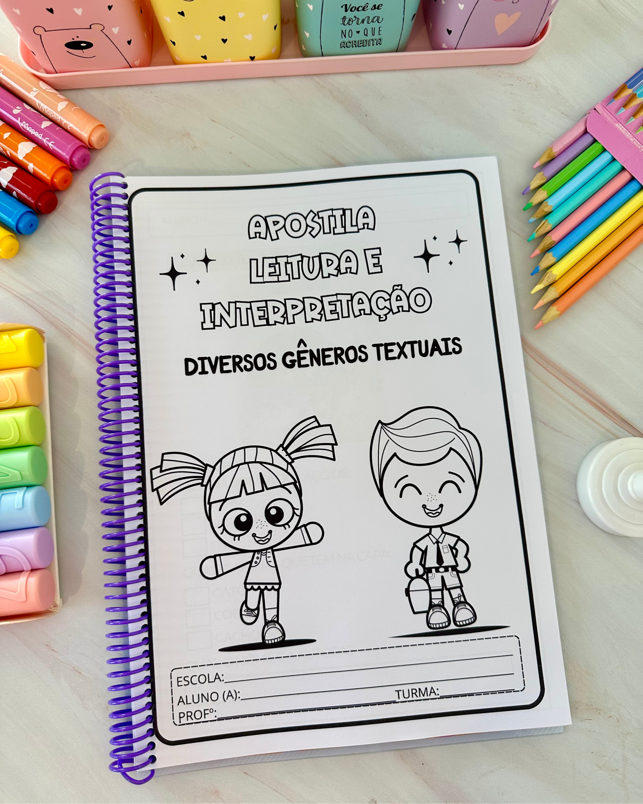 O arquivo vai em PDF pronto para impressão e vai nas opções colorida e para colorir.
